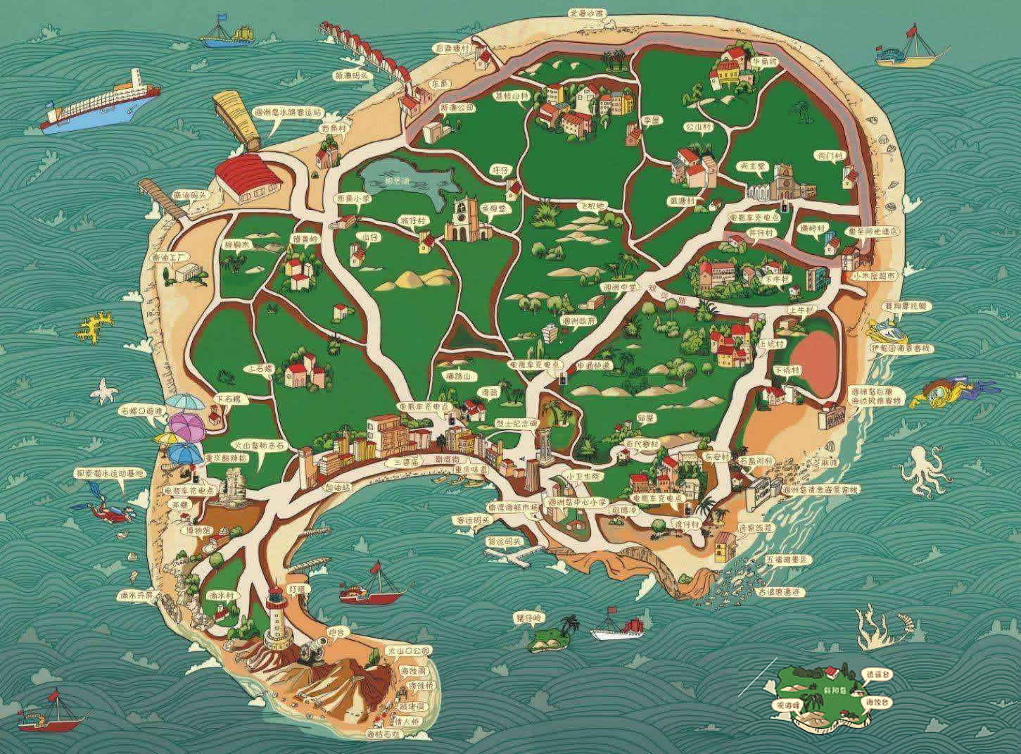 潿洲島南北長(zhǎng)6.5公里,東西寬6公里,總面積24.74平方公里,島的最高海拔79米。潿洲島是火山噴發(fā)堆凝而成的島嶼,95%以上的地層是火山巖組成,有海蝕、海積及溶巖等景觀,有“蓬萊島”之稱(chēng),是中國(guó)最大、地質(zhì)年齡最年輕的火山島,也是廣西最大的海島。