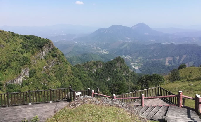 天龍頂國家山地公園位于岑溪市南渡鎮(zhèn),占地面積15平方千米。景區(qū)主峰天龍頂海拔1221米,相對高度221米,屬云開大山山脈的主峰。景區(qū)內(nèi)海拔高于1000米以上的山峰還有石豹頂、公婆頂、湖廣頂?shù)人淖椒。景區(qū)的自然資源具有多樣性,景區(qū)內(nèi)有高山湖泊、原始森林、溝壑峽谷、溪谷瀑布群、海拔1000米之上的高山草甸、海拔1200多米的丹霞山峰、延綿近數(shù)十里的斷層崖壁等等,形成了一個具有旅游觀光、休閑度假、戶外運動等多功能的復合型景區(qū)。同時,天龍頂國家山地公園也是一個純天然自然氧吧,空氣中負離子含量高達35000個/立方米。