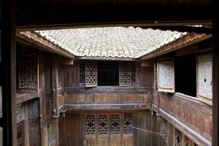 陶家院位于古城東北角,是清末木商陶明哲的住宅,為三間搭兩廂型建筑,四周圍高風火墻,天井鋪青石板,窗扇均為雕刻精美的木板花窗,上面雕有精致的鳥獸,其中的鏤空玲瓏木板雕鏤更為奇特,書房內(nèi)有壁畫,家具陳設(shè)完全,工藝精良,裝飾典雅,屋前建有門樓及防火石缸,是古城最有代表性和保存最完好的古民居建筑。