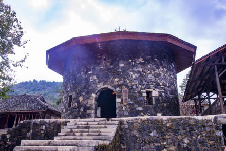 禾倉是瑤山古寨標志性的歷史古建筑,有的禾倉已存在上百年。禾倉建筑獨特,用四柱支撐,上層墊以木板,周圍用竹籬笆圍成圓形,頂上蓋以毛糙,這些禾倉里面用來存放糧食和貴重物品,具有防潮、防盜、防鼠的功能。禾倉下面通常會放置一些生產(chǎn)工具,或者供寨上的人們聚會聊天。