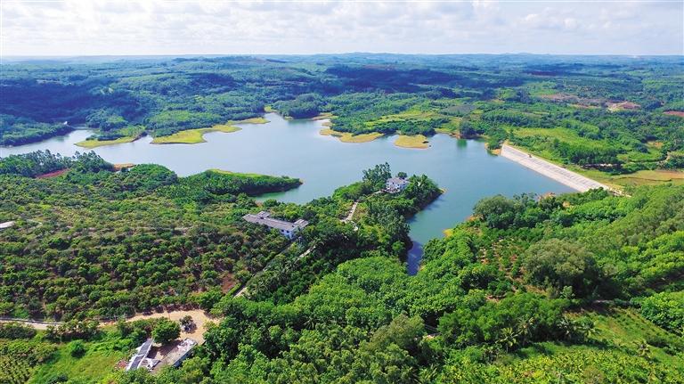 南麗湖水面1200公頃,是海南省瓊北地區(qū)最大的人工淡水湖。這里湖水清澈,碧波蕩漾,四周膠林環(huán)抱,綠樹翠竹臨岸,山清水秀,明凈瑰麗,環(huán)境幽靜雅逸,氣候溫和,終年宜泳,宜浴、宜釣。遠(yuǎn)眺南麗湖,煙波浩渺,水接著天,天連著水,碧波粼粼,湖面上空麗日融融,白云悠悠,徐網(wǎng)習(xí)習(xí)。水面云影浮游。南麗湖水域,原來(lái)是低谷、高山、巖嶺。1958年,定安人民在這里修起南扶水庫(kù),于是低谷積水成湖,原來(lái)的高山峻嶺成了湖中小島,有方的,有圓的,有長(zhǎng)的,共有13個(gè)。