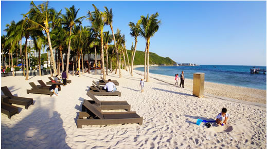亞龍灣位于市區(qū)以東30公里,1992年經(jīng)國務(wù)院批準(zhǔn)為國家級旅游度假區(qū),享有“天下第一灣”之美譽,海灣近10公里,海水能見度達(dá)20米以上,灣內(nèi)風(fēng)平浪靜,海水湛藍(lán)。亞龍灣屬典型的低緯度熱帶季風(fēng)海洋性氣候,全年長夏無冬,陽光充足,碧海、沙灘、空氣、陽光和綠色融為一體,海內(nèi)外游客盛贊“不是夏威夷,勝似夏威夷。”