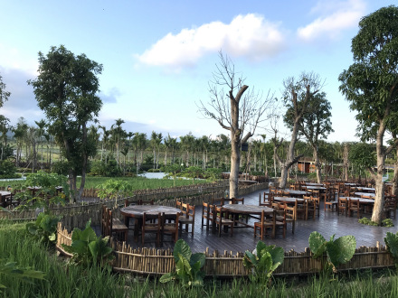 “稻田盛宴”是水稻國(guó)家公園稻田邊“長(zhǎng)出來(lái)”的原生態(tài)餐飲品牌,將中國(guó)五千年的“稻文化”“米文化”與當(dāng)?shù)亍袄杓椅幕苯Y(jié)合,打造特色田園風(fēng)情大型鄉(xiāng)村主題餐廳。圍繞中國(guó)“稻文化”、“海洋文化”主題,在椰樹(shù)下、稻田旁、鴨塘邊,滿足對(duì)“吃”的美妙想象。