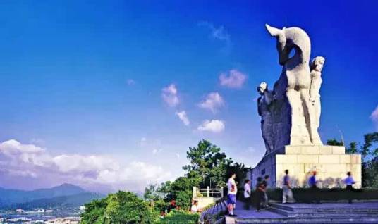 鹿回頭山頂公園位于三亞市南部3千米的海邊小山上,伸向南海、狀似坡鹿。這里三面臨海,四季山青,以其美麗的神話傳說聞名于世。主峰海拔275.1米。鹿回頭山頂已建設成一座美麗的山頂公園,并根據(jù)這個美麗的傳說在山上雕塑了一座高12米,長9米,寬4.9米的巨型雕像。三亞市也因此被人們稱為“鹿城”。