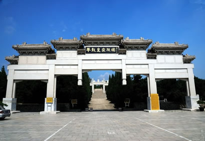 清崇陵位于泰陵的東南面約4公里的金龍峪,是我國現(xiàn)存帝陵中最后的一座。崇陵的建筑物數(shù)量與規(guī)模,完全依照同治的惠陵。建筑工巧,陵園儀樹中有罕見的羅漢松和銀松。地宮中合葬著光緒帝和隆;屎。