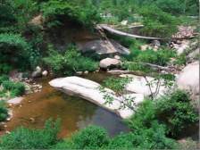 元寶潭元寶潭是畫眉谷景區(qū)的第一個景點。元寶潭是因潭中有一 個形似元寶的石頭而得名。此石是由斷裂破碎的花崗巖體經(jīng)長年水流下切侵蝕而成的。關(guān)于這元寶潭還有一個動人的傳說。傳說有盜寶者在山中盜得元寶外逃至此,被鎮(zhèn)山神指定住,寶落潭中。至今元寶仍在潭中,成為畫眉谷旅游的一道亮麗風(fēng)景。