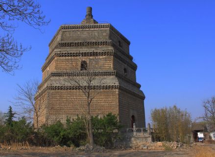 繁塔位于開封古城東南隅,建于北宋開寶七年。繁塔為六角九層空心樓閣式、仿木結(jié)構(gòu)的磚塔,原高80米,明永樂(lè)年間,將三層以上拆除,后在三層上建六層尖頂,形成了現(xiàn)今下粗上尖的塔姿。繁塔是研究我國(guó)建筑、美術(shù)和音樂(lè)的寶貴資料。