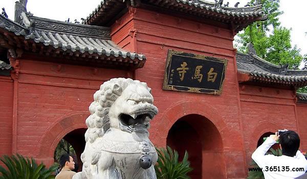 白馬寺:位于洛陽市東郊十二公里處的白馬寺村北側(cè)。始建于東漢明帝永平十一年(公元六十八年),是佛教傳入中國(guó)后由封建官府營(yíng)建的第一痤寺院,距今已有近兩千年歷史。白馬寺名稱之由來,諸說不一,據(jù)《洛京白馬寺祖庭記》碑和《巍書,釋老志》.《洛陽伽蘭記》等記載,漢明帝夜夢(mèng)金人,頂有白光.飛行殿庭。大臣傅轂說;西方有神.名曰佛,“形如階下所焚”。帝派蔡喑、秦景出使酉域拜求佛法,獲佛經(jīng),佛法并拜請(qǐng)攝摩騰、竺法蘭二位佛學(xué)大法師,來到京都洛陽,最初安排在“鴻臚寺”,暫住譯經(jīng)傳教。因譯經(jīng)傳教成績(jī)卓著,明帝赦建了中國(guó)第一座寺院,即取“鴻臚寺”之“寺”字,又因白馬馱經(jīng)來而取“白馬”冠于“寺”前,稱“白馬寺”。白馬寺從漢明帝創(chuàng)寺至今,在近兩千年的漫長(zhǎng)歲月里,曾飽經(jīng)滄桑,數(shù)廢屢興。新中國(guó)成立后,黨和人民政府先后于1952年、1954年、1959年、1973年多次拔專款對(duì)該寺進(jìn)行修葺,1961年白馬寺被列為全國(guó)重點(diǎn)文物保護(hù)單位,F(xiàn)在白馬寺不但是中外游客游覽場(chǎng)所,而且也是中外佛教信徒瞻仰朝拜的圣地。