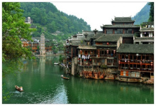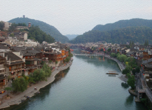 鳳凰古城,占地面積約10平方千米,城內(nèi)青石板街道,江邊木結(jié)構(gòu)吊腳樓,以及朝陽(yáng)宮、古城博物館、熊希齡故居、天王廟、大成殿、楊家祠堂、沈從文故居、萬(wàn)壽宮等建筑。