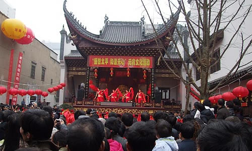 在南岳古鎮(zhèn)一帶,人們別出心裁在水上放燈迎春或送春。燈系彩紙精制成荷花狀,經(jīng)熟桐油浸透后再以松香涂抹,使之不滲水,花芯灌少量茶油,再插燈芯,點(diǎn)燃后放入古鎮(zhèn)內(nèi)外諸溪流中,任其飄流,小溪便宛如閃光的“燈龍”。觀燈者成千上萬(wàn),川流不息,場(chǎng)面頗為壯觀。