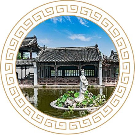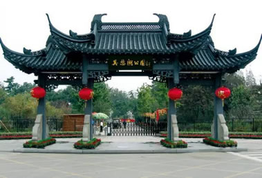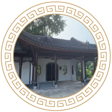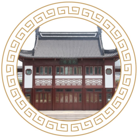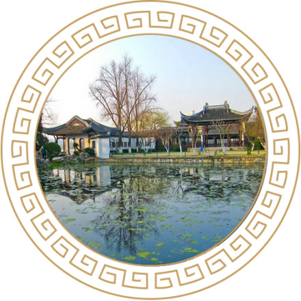 待渡亭位于莫愁水院之西,古典建筑形式,磚木結構,建筑面積38.08平方米,并附建連廊,附建走廊面積54.6平方米,設渡湖心亭游船碼頭,沿湖畔有長500米、寬2米道板路。