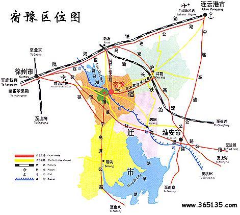 宿豫區(qū)環(huán)抱宿遷市,與徐州、連云港、淮安三市相距均在100公里左右,水陸空交通便捷。公路方面:寧宿徐、徐宿淮鹽、宿新(在建)等兩條高速公路和宿新、宿沭兩條一級(jí)公路穿境而過(guò),東距京滬高速公路55公里,距南京260公里,離上海380公里。鐵路方面:北距隴海鐵路新沂站、東離新長(zhǎng)鐵路沭陽(yáng)站均在50公里左右,淮(安)宿(遷)宿(州)鐵路(在建中)。水運(yùn)方面:黃金水道京杭大運(yùn)河縱貫?zāi)媳保瑬|距連云港港口120公里。空運(yùn)方面:西距徐州觀(guān)音機(jī)場(chǎng)60公里,北到連云港白塔埠機(jī)場(chǎng)110公里。
