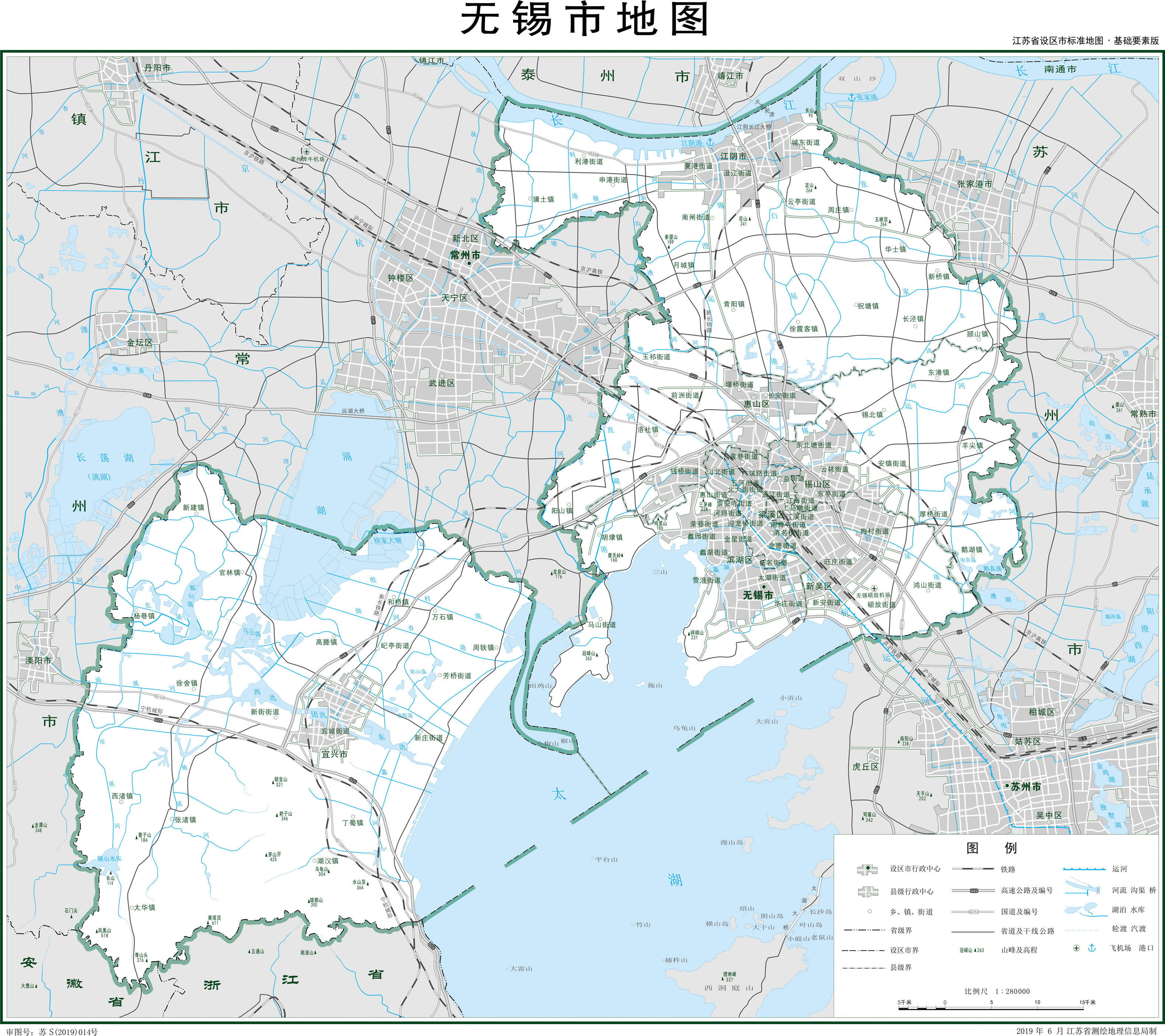 無(wú)錫市轄5個(gè)區(qū)、2個(gè)縣級(jí)市: