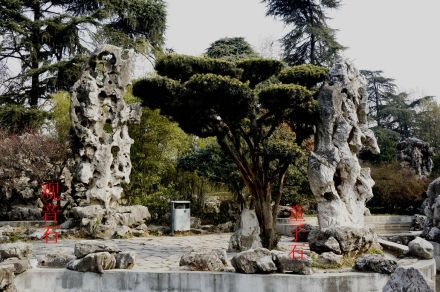 米芾拜石位于環(huán)洲北端。由三塊天然巨石組成,其中最重的過(guò)36噸,在南京已屬罕見(jiàn)。米芾是宋代書(shū)畫(huà)家,玩石如醉如癡。相傳米芾見(jiàn)奇石便“三拜九叩”,故有“米芾拜石”的典故。