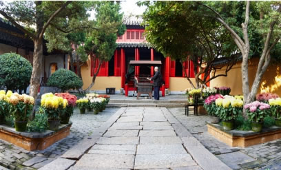 南湖園全福寺分為三個(gè)部門,東西兩個(gè)為花園,分別是為了紀(jì)念唐朝著名詩(shī)人劉禹錫、陸龜蒙和西晉文學(xué)家張季鷹而建,中間即是全福講寺。