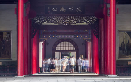 紅柱灰瓦、方磚鋪地的大堂建于太平天國榮光大殿原址,大堂正中懸掛孫中山手書“天下為公”橫匾。大堂后有東、西廂房各一,其后由封閉的西式通體方格毛玻璃封閉穿堂與二堂相連。穿堂東面是一清代四合院,西面是大禮堂。