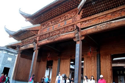 蕭江宗祠 又名永思祠,座落在婺源縣江灣鎮(zhèn)占坑村,距婺源縣城32公里,江灣約2公里。始建于明朝萬歷六年(1587年),后毀于太平天國戰(zhàn)火。1924年(民國十三年)重建,文化大革命期間又被拆毀。蕭江宗祠曾被譽(yù)為江南七十座著名宗祠中“最好的一座宗祠”為婺源古代四大古建之首。2003年9月,第三次重建。該祠盡顯王室氣派,占地面積達(dá)2400平方米,分前院、前堂、中堂、后堂四進(jìn)。前院為寬敞花園,設(shè)有青石護(hù)欄半月形蓮花池,內(nèi)養(yǎng)紅鯉魚、草魚、軍魚等多種魚類;前堂為五鳳樓、九脊頂、午朝門、月樓,梁材檐椽巧飾雕琢、畫面生動、形態(tài)逼真;中堂粗梁大柱,鼓式石礎(chǔ),石階、石欄、月臺各具特色,匾額楹聯(lián)措詞秀麗、授意深長;后堂高于前堂,有樓閣安放靈牌。