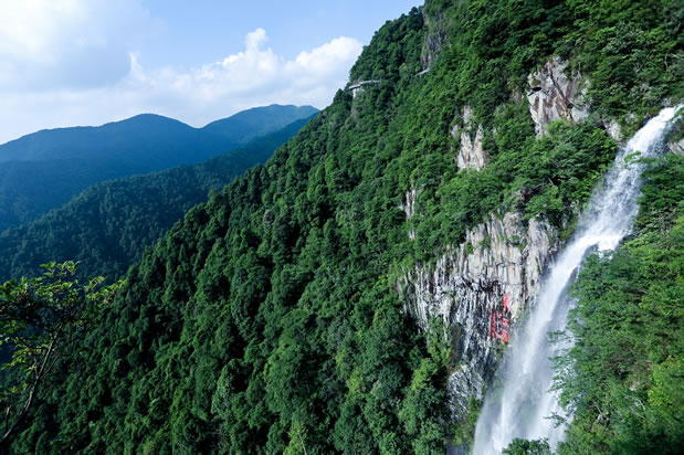 望天瀑,位于福鰲塘東北4公里處。在深山峽谷中瀑布飛流而下,站在瀑底潭邊仰望瀑布,只看見藍(lán)天白云,實為壯觀,故名“望天瀑”。