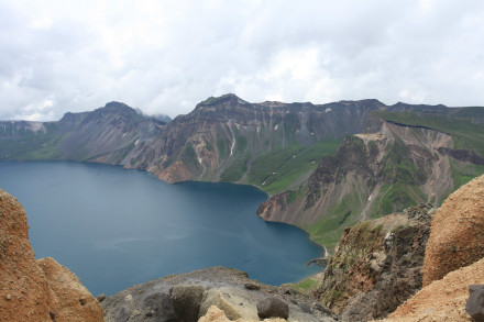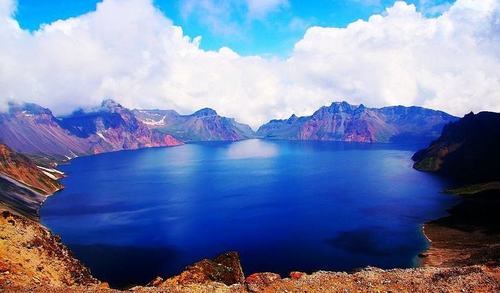 長白山天池,又稱白頭山天池,坐落在吉林省東南部長白山自然保護區(qū)內(nèi),是中國和朝鮮的界湖,雙方各擁有一部分水域。天池南北長約4400米,東西寬約3370米,其池水的海拔高度為2189.1米,最深處為373米,平均204米,水面面積9.82平方千米,周長13.1千米。據(jù)《長白山江岡志略》記載:“天池在長白山巔的中心點,群峰環(huán)抱,離地高約20余里,故名為天池!