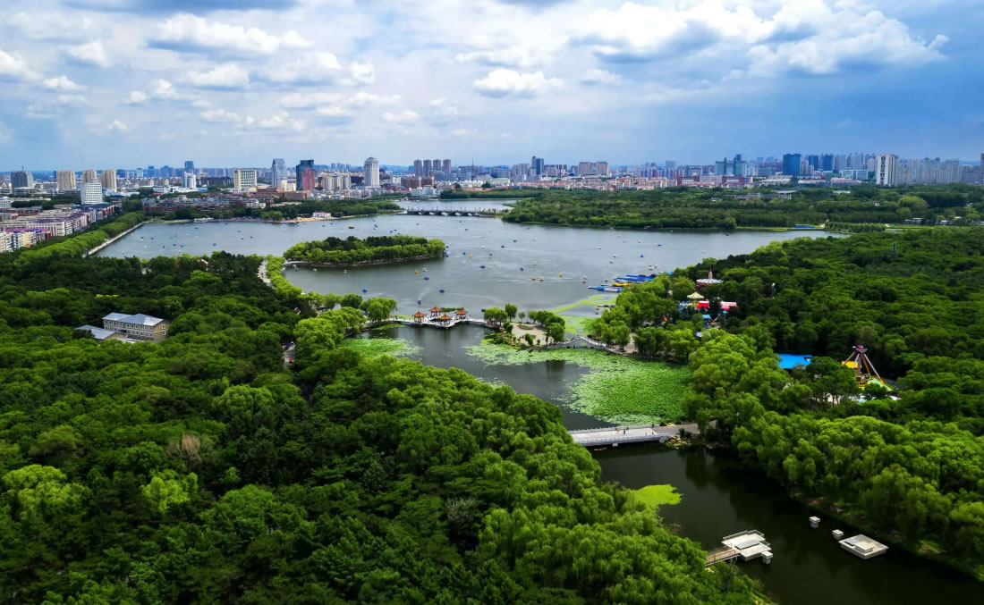 長(zhǎng)春市南湖公園位于長(zhǎng)春市朝陽(yáng)區(qū)工農(nóng)大路2715號(hào),始建于1935年,舊稱(chēng)“黃龍公園”,1945年改稱(chēng)“南郊公園”,解放后正式命名為“南湖公園”。占地面積238.6公頃,其中水面積92公頃,綠地面積134.6公頃,是超大規(guī)模的市區(qū)內(nèi)園林。