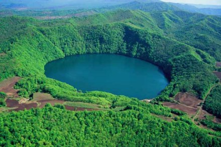 湖的周圍青山環(huán)抱,象一條巨龍盤臥在湖邊,又稱火山湖為龍灣。 7個火山湖沿龍崗山脈西側(cè),呈東北——西南方向有序排列,每湖間隔約為6——7公里,象一串6顆璀璨明珠鑲嵌在層巒疊嶂的白山峻嶺之中。在這串明珠中三角龍灣是最雄秀的。這里海拔 833 米,雖然灣面大約只有 42.6 公頃,但在三角龍灣的中心地帶,它的最深點達(dá)到 96 米。