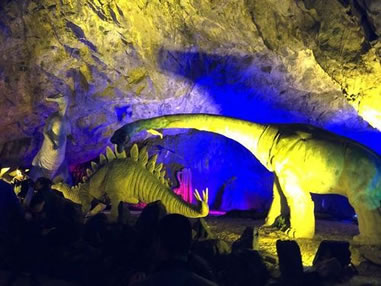 洞盡頭是一泓清潭,深不見底,水氣襲來,令人凄神寒骨,F(xiàn)利用旱洞獨特的資源,經(jīng)人工改造成為古生物宮,采用先進的聲、光、電技術(shù),再現(xiàn)了古生物的進化演變過程,是游覽和科普教育的最佳景觀。