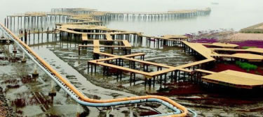棧橋曲折綿長(zhǎng)與海相接、與天相連,像一艘大船正要揚(yáng)帆起航。游客漫步于上觀賞兩側(cè)的紅灘綠葦、聆聽候鳥的百囀千聲、感受大海的波瀾壯闊,仿佛乘舟依水而行,每每流連忘返。身臨其境的讓人感受到“落霞與孤鶩齊飛,秋水共長(zhǎng)天一色”的唯美意境。