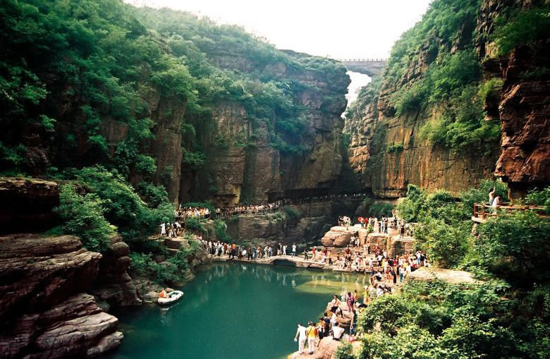 龍?zhí)洞髰{谷景區(qū),位于河南省洛陽市新安縣北部的石井鎮(zhèn) ,是一條紫紅色石英砂巖經(jīng)流水追蹤下切形成的U型峽谷。洛陽市龍?zhí)洞髰{谷全長12千米,景區(qū)是集生態(tài)峽谷旅游、休閑度假旅游、現(xiàn)代農(nóng)業(yè)旅游于一體的綜合性生態(tài)旅游景區(qū)。洛陽市龍?zhí)洞髰{谷深度達(dá)到300—500米,最窄處僅1—3米。大峽谷各段形態(tài)不同,有隘谷、嶂谷、峽谷、寬谷等類型。 景區(qū)主要形成于12億年前的地殼運(yùn)動時期,由于紫紅色石英砂巖經(jīng)上隆下降、崩裂塌陷和長期的水沖、風(fēng)剝等作用,形成了此地紅巖嶂谷群地貌。景區(qū)海拔高度在700—1000米之間,地勢西北高東南低。主要景點有黛眉山地質(zhì)博物館、五龍?zhí)丁Y谷、水往高處流、黑水潭等。景區(qū)由外向內(nèi)、自東向西可分為田園生態(tài)游覽區(qū)、現(xiàn)代休閑度假區(qū)、游客服務(wù)功能區(qū)和核心生態(tài)旅游區(qū)。