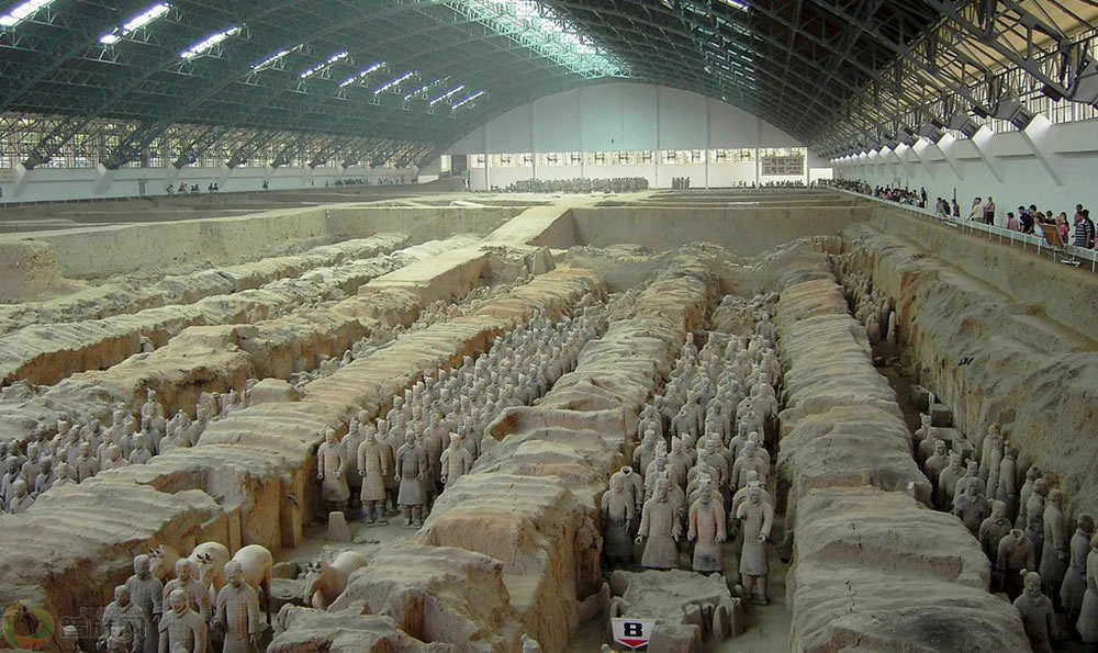 秦始皇兵馬俑博物館位于陜西省西安市臨潼區(qū)秦陵鎮(zhèn),成立于1975年11月,原為秦始皇兵馬俑籌建處,于1979年10月1日正式開(kāi)館,建于臨潼縣東7.5公里的驪山北麓的秦始皇帝陵兵馬俑坑遺址上,西距西安37.5公里;和麗山園合稱秦始皇帝陵博物院。已先后建成并開(kāi)放了秦俑一、三、二號(hào)坑和文物陳列廳。目前秦俑博物館面積已擴(kuò)大到46.1公頃,擁有藏品5萬(wàn)余(套)件。一號(hào)兵馬俑坑內(nèi)約埋藏陶俑、陶馬6000件,同時(shí)還有大量的青銅兵器;二號(hào)兵馬俑坑內(nèi)埋藏陶俑、陶馬1300余件,二號(hào)俑坑較一號(hào)俑坑的內(nèi)容更豐富,兵種更齊全;三號(hào)俑坑的規(guī)模較小,坑內(nèi)埋藏陶俑、陶馬72件;陳列廳內(nèi)有一、二號(hào)銅車(chē)馬。