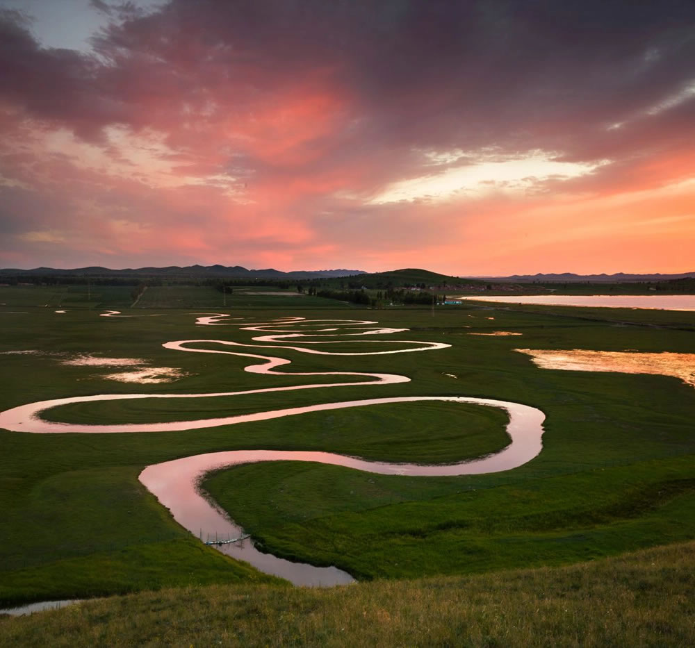 灤河神韻風(fēng)景區(qū)位于沽源縣城東北二十公里處,北依轉(zhuǎn)佛山,南臨茫茫金蓮川大草原,東有轉(zhuǎn)佛廟,西望草原湖,遙遙相對的是元代“小宏城遺址”(金蓮川幕府)。這里水草豐美、風(fēng)景秀麗、氣候涼爽,歷史上曾是北魏御夷鎮(zhèn),遼、金、元?dú)v代帝王游獵避暑的圣地,被康熙大帝御贊為“八百里金蓮川百花爭艷”的精品部落。 灤河神韻源頭閃電河蜿蜒流轉(zhuǎn)、九曲十八彎是大自然鬼斧神工的神韻之筆而得名,全縣生態(tài)旅游的品牌景點(diǎn)。景區(qū)總面積34.3公頃,是全縣60萬畝濕地草原的代表。濕地內(nèi)有野生植物210種,陸生脊椎動物222種,其濕地類型、景觀及生物多樣性在草原濕地中具有較強(qiáng)的典型性和代表性。