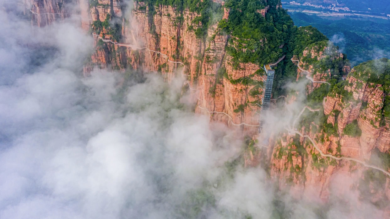 - 經(jīng)典路線:入口→天瀑→玻璃棧道→天鏡湖→云中寺→天脊長城→出口。