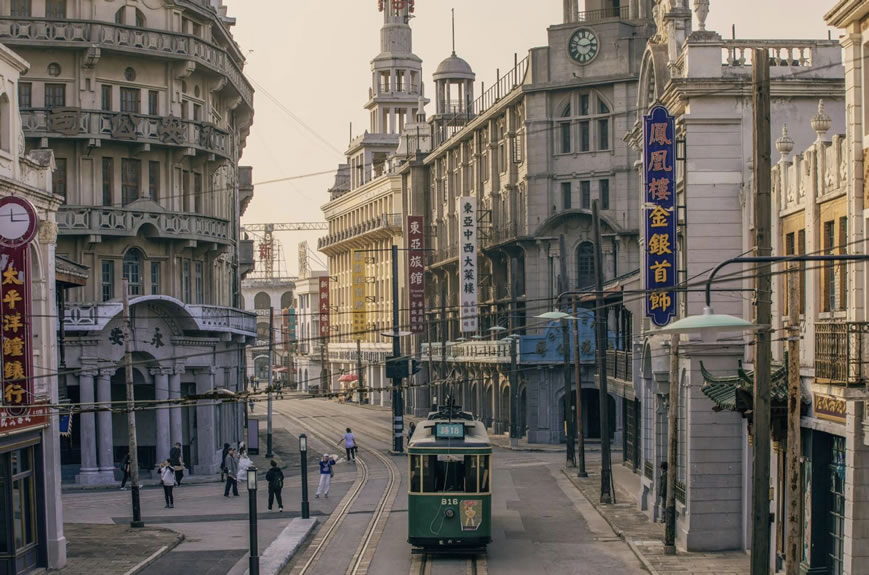 - 南京路:重現(xiàn)十里洋場的繁華景象,有軌電車穿梭其間,街邊復(fù)古店鋪林立,仿佛穿越回30年代的老上海。