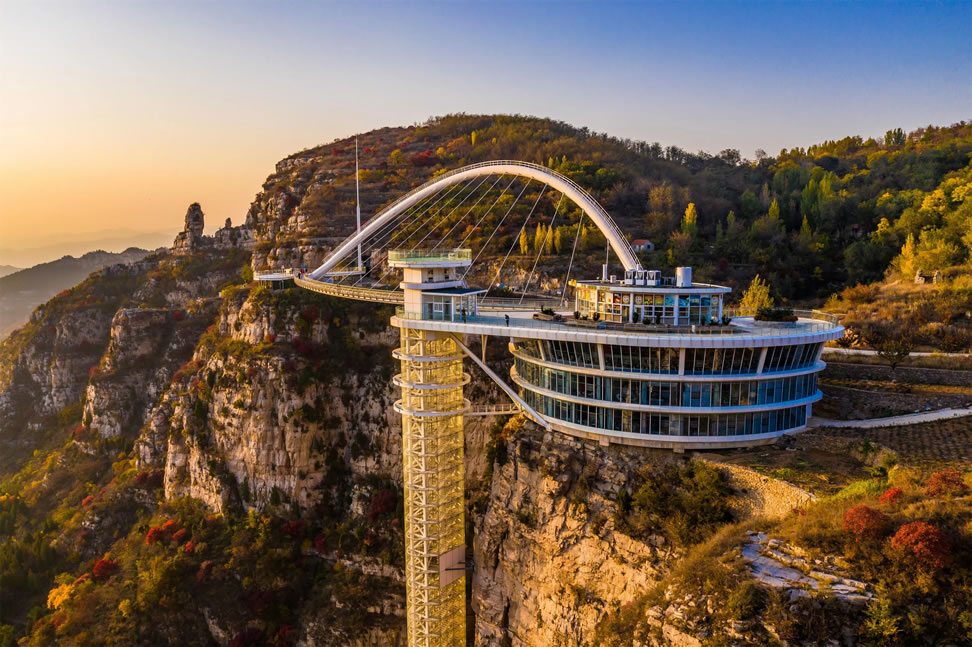 - 全長(zhǎng)117米,懸空高度110米,為世界首例無(wú)背索斜拉弧形玻璃橋,橫跨峽谷之間,可俯瞰潭溪山全景,驚險(xiǎn)刺激。