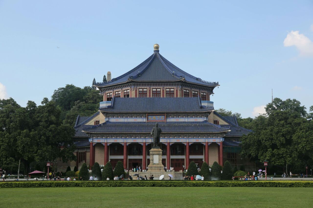 廣州中山紀念堂,位于廣東省廣州市越秀區(qū)東風中路299號,是廣州人民和海外華僑為紀念孫中山先生集資興建的。民國十八年(1929年)動工,民國二十年(1931年)竣工。中山紀念堂坐落于孫中山先生當年的總統(tǒng)府舊址上,總占地面積為6.3公頃。廣州中山紀念堂是廣州最具標志性的建筑物之一,是中國傳統(tǒng)建筑風格與西方建筑結構完美結合的典范。主體建筑占地1.2萬平方米,高52米,是一座八角形古宮殿式建筑。它采用鋼桁架和鋼筋混凝土結構,由前后左右四個宮殿式重檐歇山抱廈建筑組成。堂頂鑲蓋寶藍色的琉璃瓦,瓦面分高低四層,層層飛檐出卷。大堂內(nèi)跨度達71米的建筑空間內(nèi)不設一柱,氣勢恢宏,富麗堂皇。