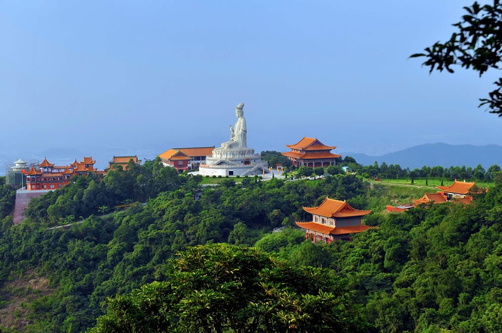廣東觀音山國家森林公園,位于廣東省東莞市樟木頭鎮(zhèn)筆架山路190號觀音山,地處珠江三角洲東南部,東莞市東部,樟木頭鎮(zhèn)中心邊緣,距鎮(zhèn)中心1.5千米,距離東莞市區(qū)大約40千米,總面積657.18公頃。廣東觀音山國家森林公園最高點為耀佛嶺,海拔566米,觀音山海拔488米。屬丘陵山地地貌。所在地區(qū)樟木頭鎮(zhèn)屬南亞熱帶海洋性季風氣候區(qū)。森林覆蓋率達92%以上,常見植物種類有73科199種。其中屬國家保護的動植物22種,瀕危植物包括粘木、白桂木、蘇鐵蕨、土蠶霜、金茶花、野茶樹和野生龍眼等。有獸類、飛鳥類、甲殼類、昆蟲類等300多種動物。廣東觀音山國家森林公園內建成了以正門樓、觀音廣場、觀世音菩薩法像、仙宮嶺、普渡溪、感恩湖、回音壁、怡心亭、慈云閣、先人石壘、古樹博物館、國際會展中心、仙泉游泳館等20余處景點;內設6.8千米的吉祥路(佛光路),既可觀景也可休閑健身;還有飛天威亞、龍鳳天梯、冰雪樂園、山地越野車等娛樂項目,是親子家庭放松休閑、寓教于樂的自然課堂。