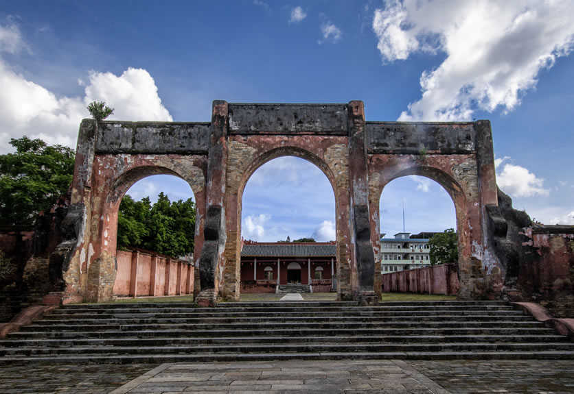- 特色:古城唯一保留下來的城門,紅墻綠瓦,仿宮殿樓臺式建筑,分兩層,底層為甕城,中開拱門,雄偉壯觀。