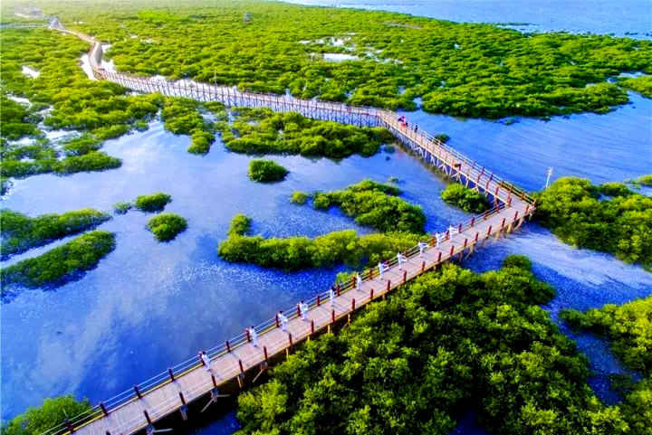- 特色:擁有1300畝原生紅樹(shù)林、白鷺棲息地、灘涂生物多樣性(招潮蟹、彈涂魚(yú)、中國(guó)鱟等),可體驗(yàn)疍家趕海、觀鳥(niǎo)、生態(tài)導(dǎo)覽,兼?zhèn)溷y灘燈塔、西村港跨海大橋等景觀。