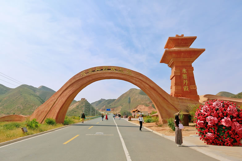 蘭州水墨丹霞旅游景區(qū)位于甘肅省蘭州市永登縣樹屏鎮(zhèn)杏花村,景區(qū)橫跨蘭州市的永登縣、西固區(qū)、皋蘭縣,主體位于永登縣的苦水鎮(zhèn)、樹屏鎮(zhèn),景區(qū)規(guī)劃總面積400平方千米,一期核心游覽面積20平方千米,是中國(guó)已發(fā)現(xiàn)面積最大的同類型地貌景觀。蘭州水墨丹霞地貌,發(fā)育于白堊紀(jì)至第三紀(jì)時(shí)期,是喜馬拉雅造山運(yùn)動(dòng)中發(fā)育形成的紅色巖系隨著地殼的抬升,保留下來的紅色砂巖,經(jīng)長(zhǎng)期風(fēng)化剝離和流水侵蝕形成的地質(zhì)奇觀。2017年7月,蘭州水墨丹霞旅游景區(qū)取得市政府總體規(guī)劃批復(fù),于2018年7月完成立項(xiàng),2019年4月啟動(dòng)建設(shè),2021年10月1日正式開園。蘭州水墨丹霞旅游景區(qū)主要以紅山灣地貌為主,兼有丹霞崖壁、孤峰、幽谷等奇特景觀,主要景觀包括絲路霞光、九色丹青、丹頂攬勝等7個(gè)觀景平臺(tái)和絲路古途景觀大門、沙韻駝鈴景觀大道及全長(zhǎng)3500米的丹霞棧道。蘭州水墨丹霞旅游景區(qū)因分布面積最大、地貌種類最全、形成時(shí)間最古老、發(fā)現(xiàn)時(shí)間最晚、保存最完好、離城市最近、原住居民最少、文化積淀最深、名人經(jīng)過最多而素有“九最”之稱。