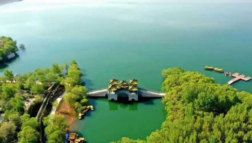 - 漢白玉觀音像:高50米,象征佛教文化,可登頂俯瞰湖景。