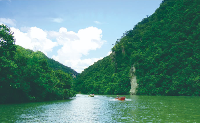 - 峽谷溪流:幽深峽谷、清澈溪河、碧綠山潭與怪石嶙峋的山峰構(gòu)成“漓江式山水畫(huà)卷”,如“相思河峽谷”“龍?zhí)镀俨?rdquo;“仙女回眸瀑布”等。