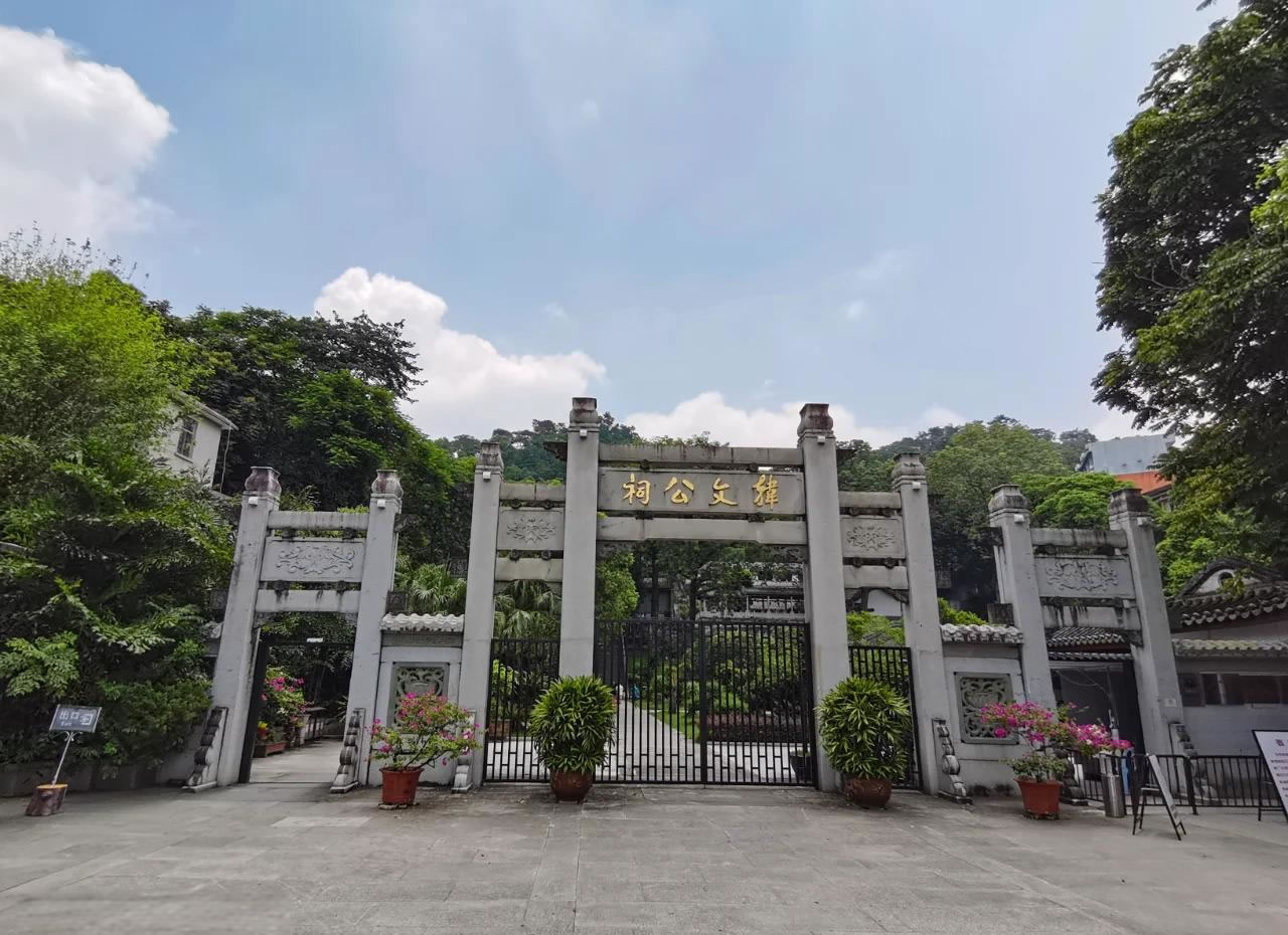 潮州韓文公祠位于廣東省潮州市湘橋區(qū)筆架山西麓,始建于北宋咸平二年(999年),是中國現(xiàn)存最早紀念唐代文學家韓愈的祠宇。該祠初建于金山麓夫子廟東廂,南宋淳熙十六年(1189年)遷至現(xiàn)址,主體建筑分前后二進,現(xiàn)存建筑為1984年修復后的廣府式祠宇格局。北宋元祐五年(1090年)知州王滌遷祠至州南七里,蘇軾撰寫《潮州韓文公廟碑》;南宋淳熙年間知州丁允元因韓愈曾植橡木于筆架山,將祠遷至今址。祠內(nèi)現(xiàn)存明清碑刻40通,主祠面寬18.7米,淡綠色砍磨磚墻面與廣州陳家祠工藝一致,磚木銜接嚴密,正門懸“韓文公之祠”隸書匾額。祠前甬道盡端處有五十一級筆直石蹬道,梁間遍掛名家題寫匾額。1984年修復后,景區(qū)陸續(xù)增建“天南碑勝”書法碑廊、允元亭、侍郎閣等景點,占地面積擴至134.64畝。祠內(nèi)設有韓愈勤政廉政展覽館,陳列潮繡、剪紙等民間藝術形式展現(xiàn)其治潮事跡 。