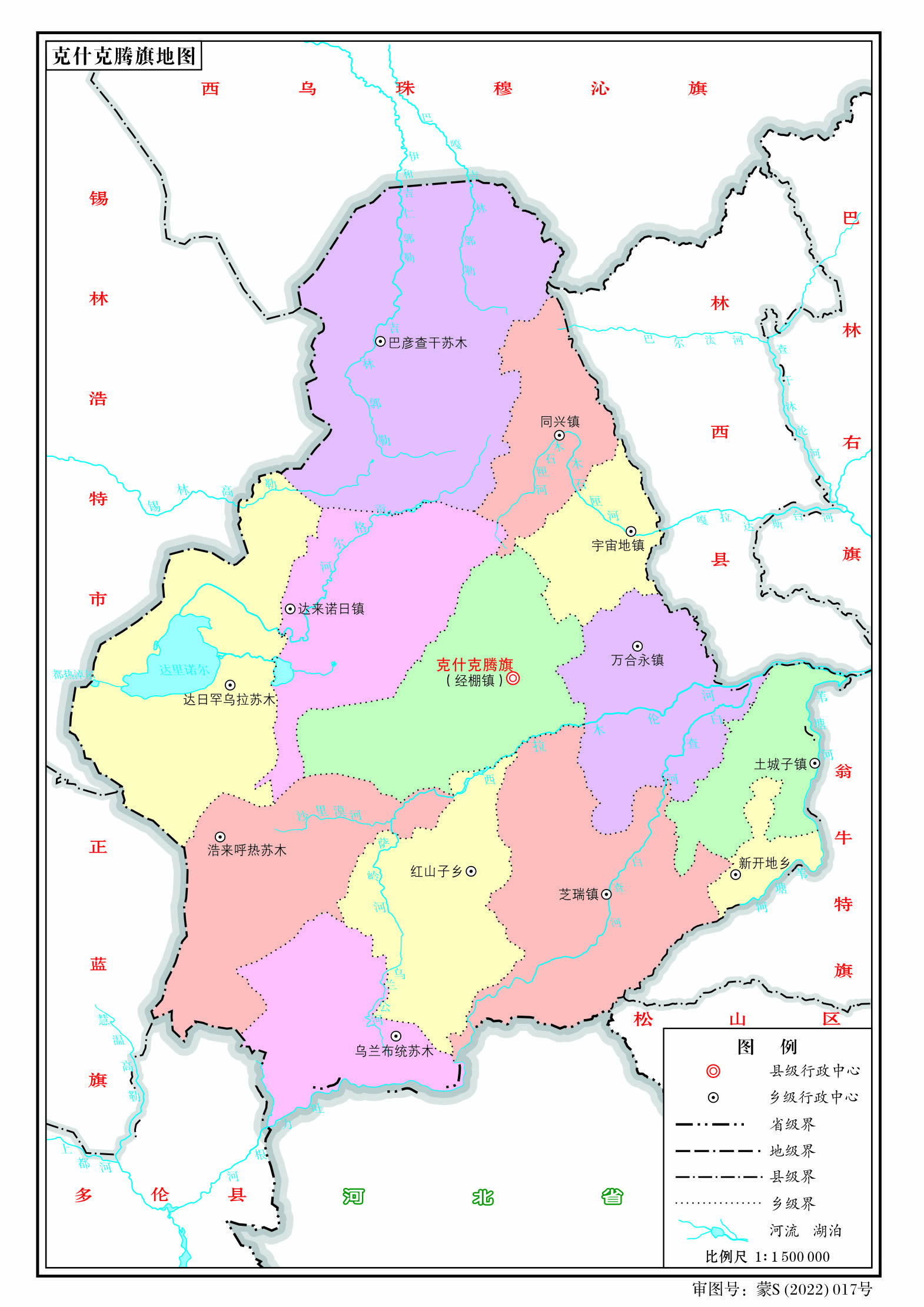 鎮(zhèn):經(jīng)棚鎮(zhèn)、宇宙地鎮(zhèn)、土城子鎮(zhèn)、達來諾日鎮(zhèn)、同興鎮(zhèn)、萬合永鎮(zhèn)、芝瑞鎮(zhèn)