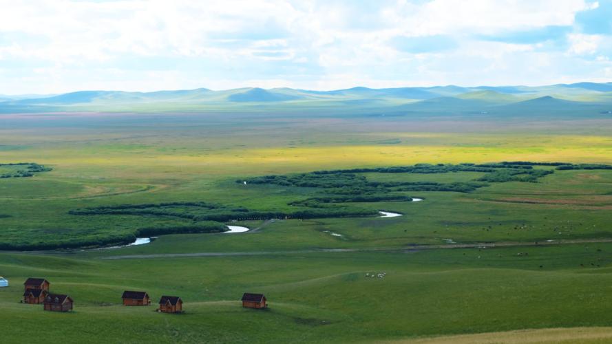 錫林郭勒草原屬內(nèi)蒙古高原的一部分,地形比較平坦開闊,可利用優(yōu)質(zhì)天然草場(chǎng)面積 18 萬平方公里。其地勢(shì)由東南向西北方向傾斜,東南部多低山丘陵,盆地錯(cuò)落,西北部地形平坦,一些低山丘陵和熔巖臺(tái)地零星分布其間。東北部為烏珠穆沁盆地,河網(wǎng)密布,水源豐富。西南部為渾善達(dá)克沙地,由一系列壟崗沙帶組成,多為固定和半固定沙丘。海拔在