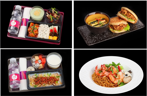 自2024年7月起,往返北京、上海、廣州、杭州、成都及重慶的乘客將有機會逐步享受到專門為中國口味定制的特色菜單,包括蔥油拌面、燒餅、生煎包、酸辣粉、棒棒雞等多種美食