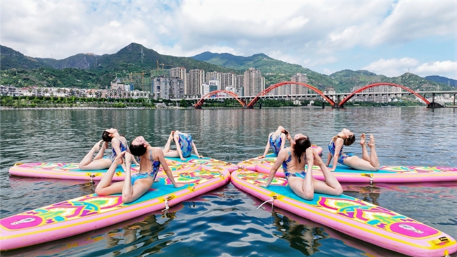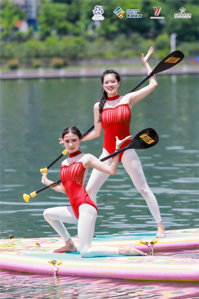 前屈、后彎、扭轉(zhuǎn)、平衡、倒置……音樂與動作和諧統(tǒng)一,身體與槳板融為一體。參賽隊(duì)員們展示的不僅是控制身體的力量,更是人與自然、美與健康的完美結(jié)合,圍觀群眾不時給予陣陣掌聲。