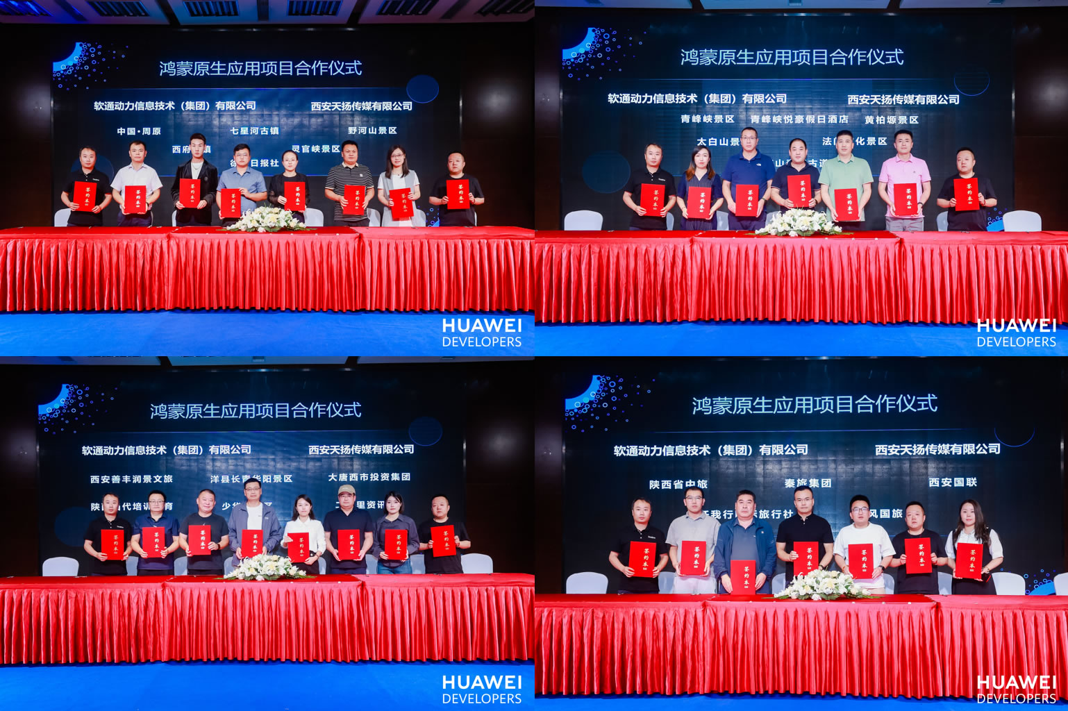 陜西省及西安市境內(nèi)眾多5A級、4A級景區(qū)及其他文旅行業(yè)從業(yè)代表到場共話原生鴻蒙帶來的數(shù)智創(chuàng)新引力。中國周原景區(qū)、七星河古鎮(zhèn)、野河山景區(qū)、西府古鎮(zhèn)、靈官峽景區(qū)、徐州日報社、黃柏塬景區(qū)、青峰峽景區(qū)、太白山景區(qū)、法門文化景區(qū)、少華山景區(qū)、洋縣長青華陽景區(qū)、大唐西市投資集團、西安善豐潤景文旅、陜西當代培訓教育、華商二三里資訊、陜西省中旅、西安國聯(lián)、任我行國際旅行社、秦風國旅共20家景區(qū)及文旅行業(yè)相關應用現(xiàn)場簽約,將深度結合HarmonyOS文旅行業(yè)“樣板間”能力,啟動鴻蒙原生應用/服務開發(fā)。據(jù)了解,華為開發(fā)者聯(lián)盟生態(tài)市場已聯(lián)合軟通動力規(guī)劃上線HarmonyOS文旅行業(yè)“樣板間”,該“樣板間”可實現(xiàn)95%公共特性覆蓋,并助力行業(yè)應用實現(xiàn)80%以上的開發(fā)效率提升,實現(xiàn)高效打造智慧文旅行業(yè)創(chuàng)新體驗。