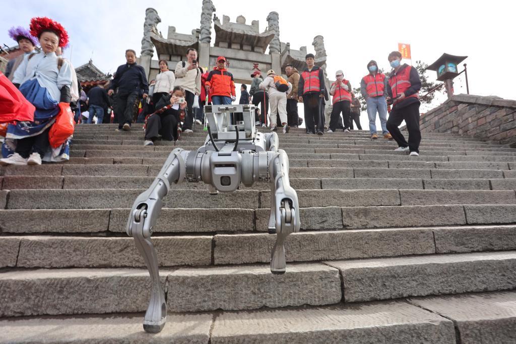 圖為正在泰山進(jìn)行測(cè)試的機(jī)器狗。新華社發(fā)