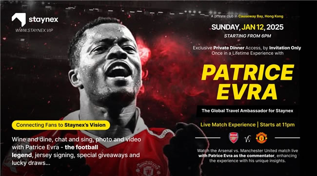 新加坡STAYNEX.VIP WEB3酒店入駐平臺(tái)攜手曼聯(lián)傳奇球星在香港銅鑼灣高級(jí)私人會(huì)所將舉辦2025年高級(jí)VIP跨年榮譽(yù)晚會(huì)。