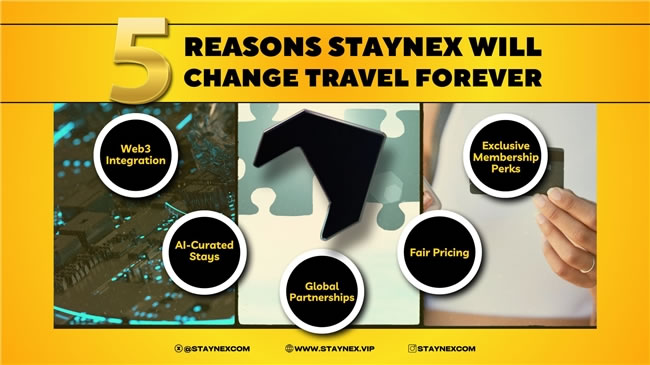作為旅游行業(yè)的先驅(qū),Staynex 將數(shù)字技術(shù)與現(xiàn)實(shí)世界的專業(yè)服務(wù)無縫融合,重新定義探索世界的方式。通過獨(dú)特的 Web2.5 戰(zhàn)略,打造了獨(dú)家合作伙伴關(guān)系與企業(yè)聯(lián)盟,為酒店及度假村預(yù)訂提供無與倫比的價(jià)值與優(yōu)惠。 整合了 Web3 技術(shù)和人工智能,具有真實(shí)世界資產(chǎn)(RWA)層。通過 “權(quán)益池”(Stake & Claim Pool)的經(jīng)濟(jì)收益模式。全球 250 多萬家酒店和服務(wù)式公寓達(dá)成合作,提供專享價(jià)格。