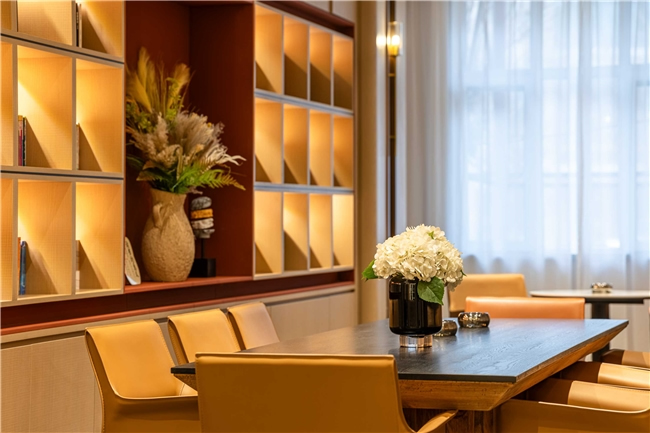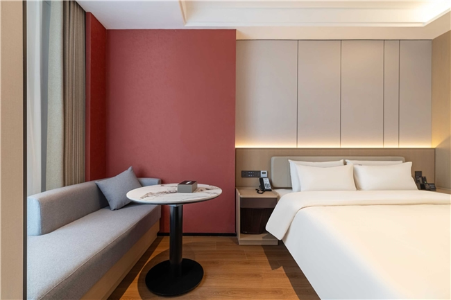 酒店共設(shè)125間豪華客房,涵蓋高級(jí)房、行政房、親子房及行政套房等多種房型。設(shè)計(jì)以“海棠紅”與“寶石紅”為主色調(diào),融合現(xiàn)代雅致與地域文化元素,營(yíng)造淡泊素雅的藝術(shù)氛圍?头颗鋫渲悄苷Z(yǔ)音助手、智能門(mén)鎖、燈光控制系統(tǒng)等科技設(shè)施,打造沉浸式智慧旅居空間。公共區(qū)域還設(shè)有大堂吧、書(shū)吧、茶室、中餐廳、會(huì)議室、健身房、洗衣房等配套設(shè)施,滿(mǎn)足賓客的多元需求。